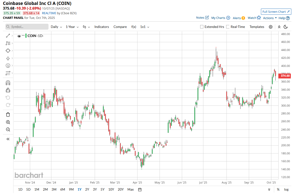Coinbase Wants a National Trust Charter. Should You Buy, Sell, or Hold COIN Stock Here?![]() With the crypto market continuing to rally in very impressive fashion, it should be no surprise to investors to see shares of centralized crypto trading platform Coinbase (COIN) absolutely take off. ![]() Indeed, looking at the stock chart above, the 12-month move in COIN stock has certainly been tantalizing for investors. For those who bought near the April lows, a near-triple-up over this time frame indicates just how meaningfully this stock can move on any sort of bullish momentum in the crypto market when combined with strong institutional capital flows into this space. Let's dive into a big announcement Coinbase just released: the company is seeking a national trust charter from the Office of the Comptroller of the Currency (OCC) to expand its custody business. Here's what it means for investors and why Coinbase is once again on the move right now. What's the Big Deal?Coinbase announcing plans to apply for a national trust company is a significant move. Similar to other players in the crypto space that either applied for bank charters or acquired companies with bank charters, the reality is that a company like Coinbase can benefit in an outsized way from operating what is considered to be a federally regulated trust. With such a charter, Coinbase has the potential to see much higher growth in its banking and custody services segments, which are becoming a more meaningful piece of the revenue and earnings pie for the company. When times are booming and everyone wants to trade crypto, Coinbase will certainly take their cut in the form of transaction fees. But having a strong banking and custody business is important, as it will not only allow Coinbase to weather any potential storms on the horizon but also provide a much more stable and consistent earnings base from which COIN stock can hopefully head higher over time. What Do the Fundamentals Say?If Coinbase can indeed receive the charter it's looking for to expand this key segment, I do think there's a lot to like about where COIN stock is positioned right now. ![]() Looking at the company's valuation ratios above, it's clear that market participants are pricing in a growth slowdown moving forward, at least on the earnings front. Now, some capital will need to be put to work to put in place many of Coinbase's growth initiatives (such as its bid for its aforementioned charter). However, with a profit margin near 40%, even factoring in some margin compression and additional capex spending, I think the company's forward multiple is likely compressed on an overall basis. That's because as the company's other services businesses continue to grow relative to its transaction fee business line, any sort of acceleration of top-line growth should bleed through to the bottom line similarly. In other words, Coinbase is maturing, and that's a good thing. What Do the Analysts Think?Wall Street analysts covering Coinbase (and there are quite a few, 33 to be exact) are mixed in their views on where this stock is headed from here. That's evident when a company trading just shy of $380 per share has a high price target of $510 and a low price target of just $185. The consensus price target on COIN stock currently sits at around $381 per share, implying the average analyst thinks this stock is basically fully valued right now. That's probably a fair view for investors who are looking at Coinbase given its current state. However, if the crypto market continues to take off and Coinbase can successfully vertically integrate banking services into its model, perhaps the high target underestimates this company's value. On the other hand, if the crypto market undergoes another “winter” or period of cooling, and hiccups are seen with future integrations, it's possible there's plenty of downside from here. High-risk, high-reward—that's what Coinbase investors want, and that's what they'll get with this name. ![]() On the date of publication, Chris MacDonald did not have (either directly or indirectly) positions in any of the securities mentioned in this article. All information and data in this article is solely for informational purposes. For more information please view the Barchart Disclosure Policy here. |